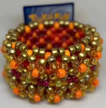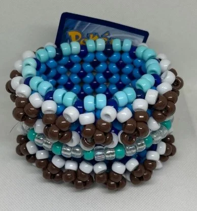 Kandi work is made out of pony beads & either stretchy elastic string or fishing line, depending on the function of the piece.