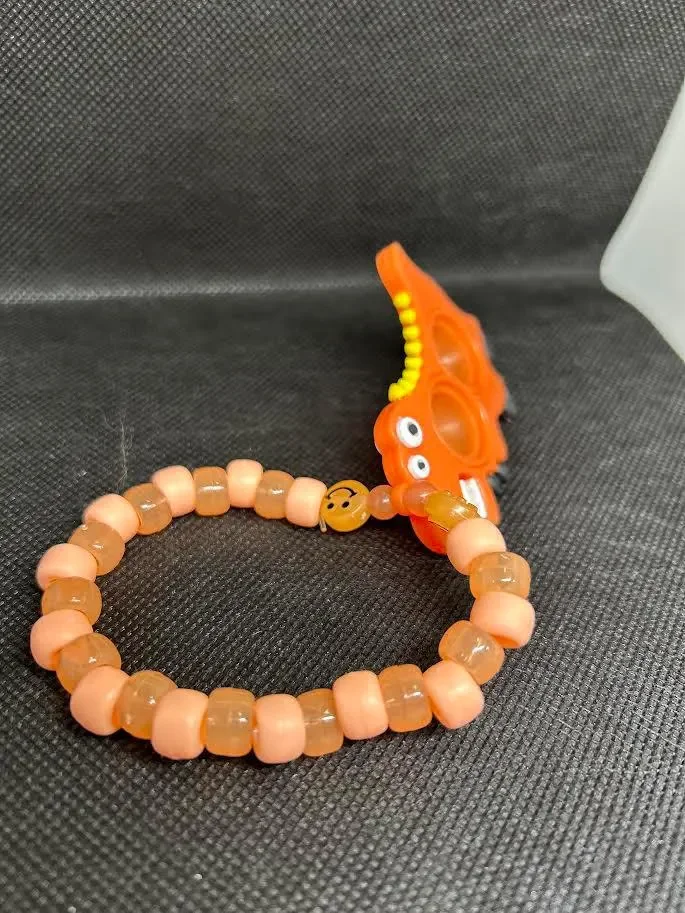 Handmade beaded kandi single bracelet with a grey and black colored palette theme. It features a Juul Pod focal bead with the words “Lemme Hit Dat”. This bracelet is made with pony beads strung together with elastic stretchy string & knots are sealed with super glue, so one size fits most.
