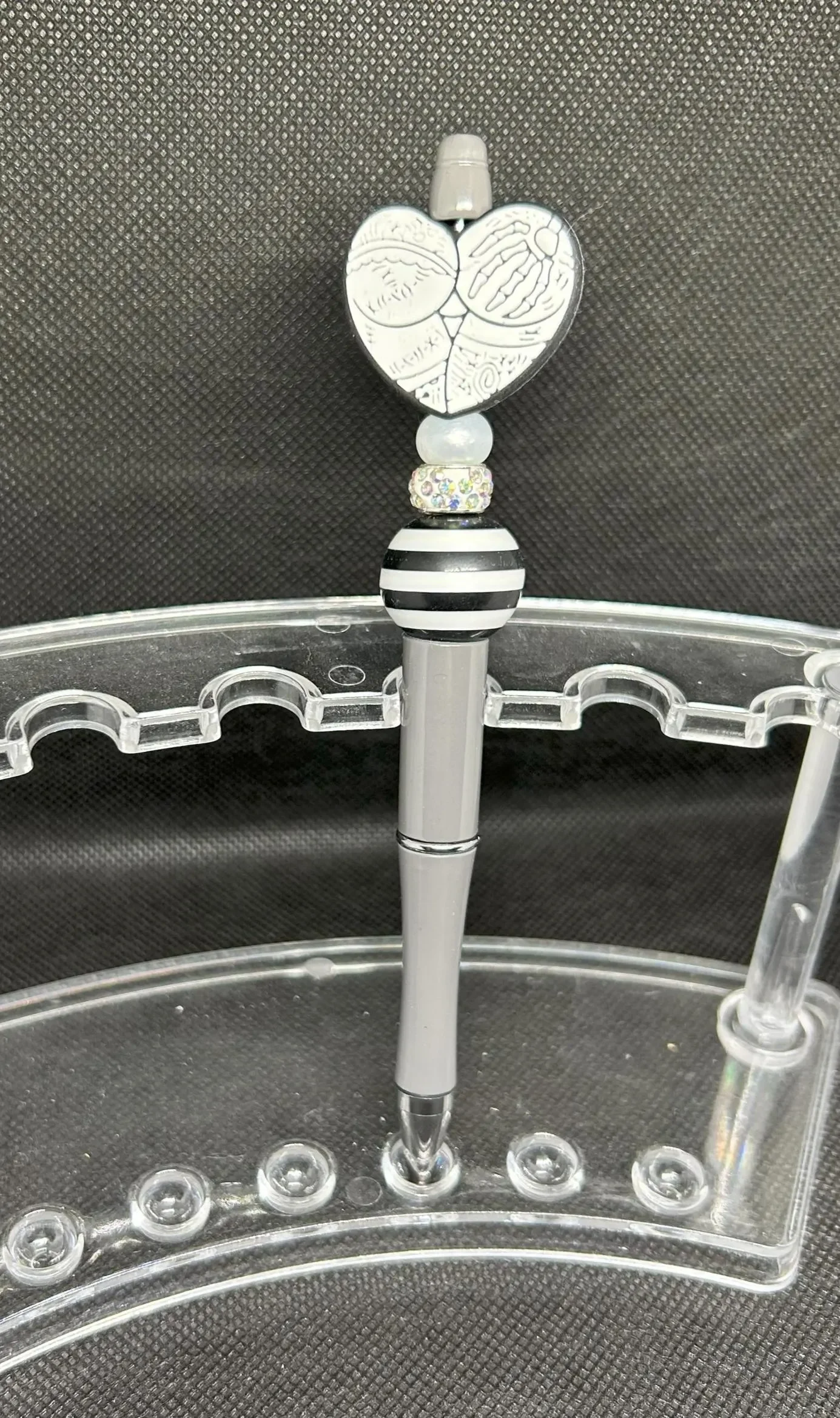 Purple Fuzzy Teddy Bear Refillable Beaded Pen