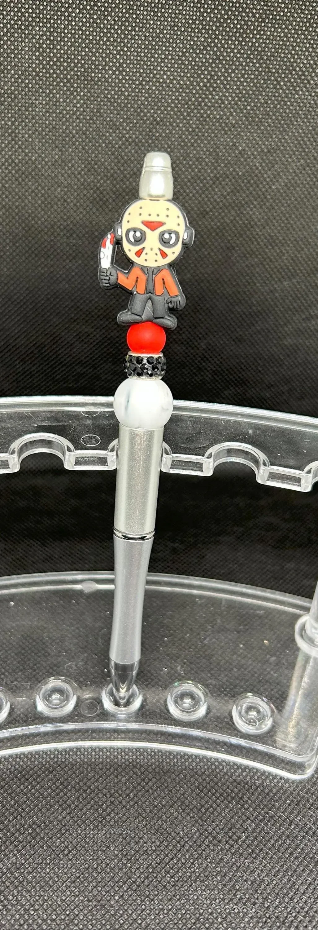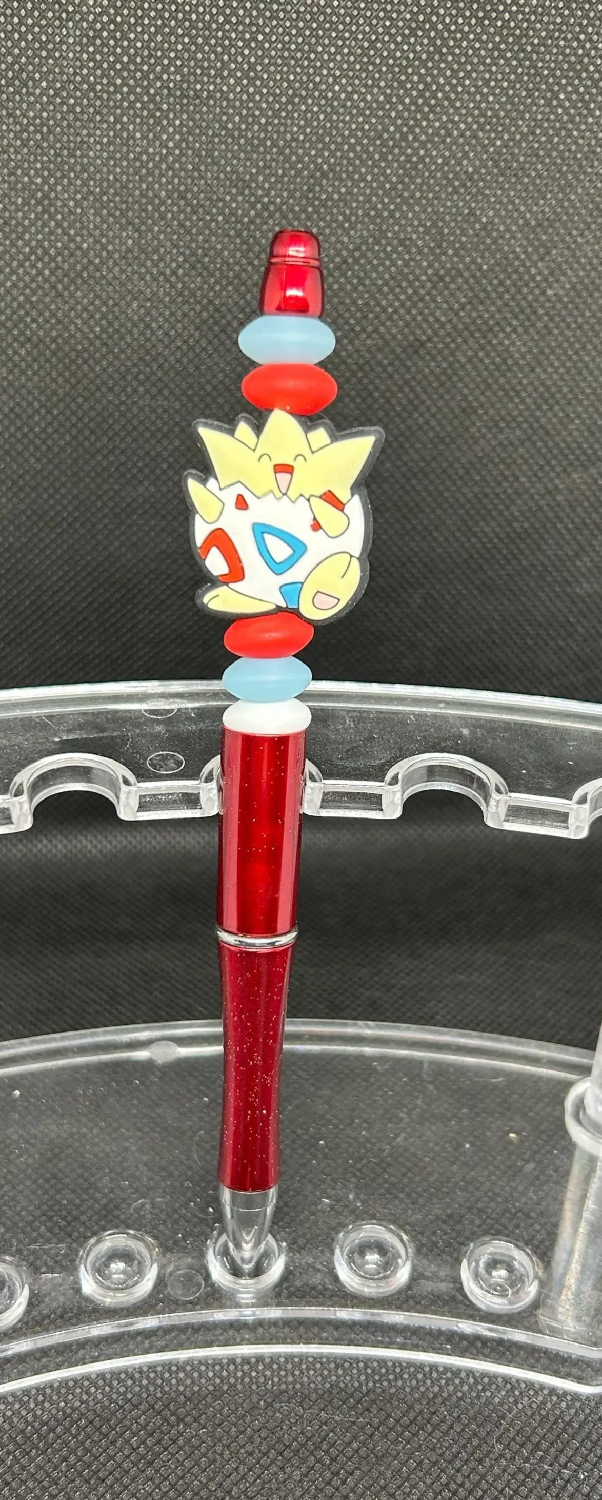 Handmade beaded refillable pen featuring a Silver Charmander Funko Pocket-Pop. My hand is in the photos for size reference.