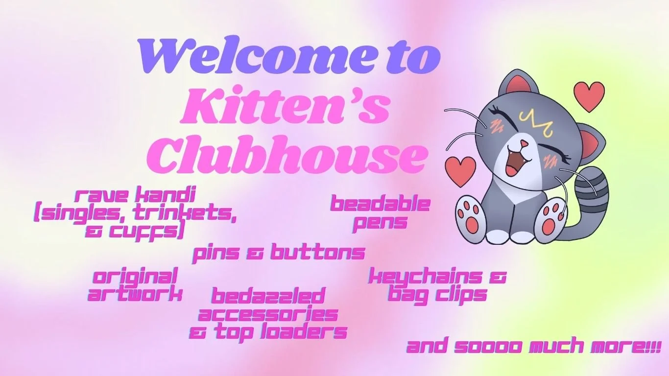 Welcome to my handmade shop, Kitten’s Clubhouse!! This is a colorful kandi shop specializing in handmade kandi bracelets, custom rave jewelry, and playful accessories inspired by festival culture and self-expression. Every piece is carefully handcrafted using vibrant beads, charms, and elastic to create fun, wearable art that’s perfect for raves, music festivals, EDM events, and everyday wear.